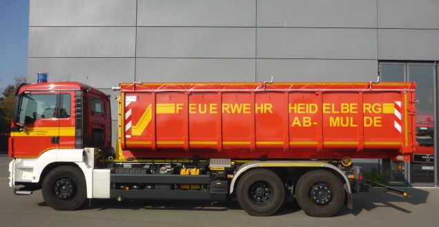 Bei dem Abrollbehälter Mulde (AB-M) handelt es sich um einen flüssigkeitsdichten Abrollbehälter nach DIN 14505 mit Rollplanenverschluss und einem Fassungsvermögen von 22 m³. Der AB-M kann für unterschiedliche Einsatzszenarien genutzt werden, wie zum Beispiel: