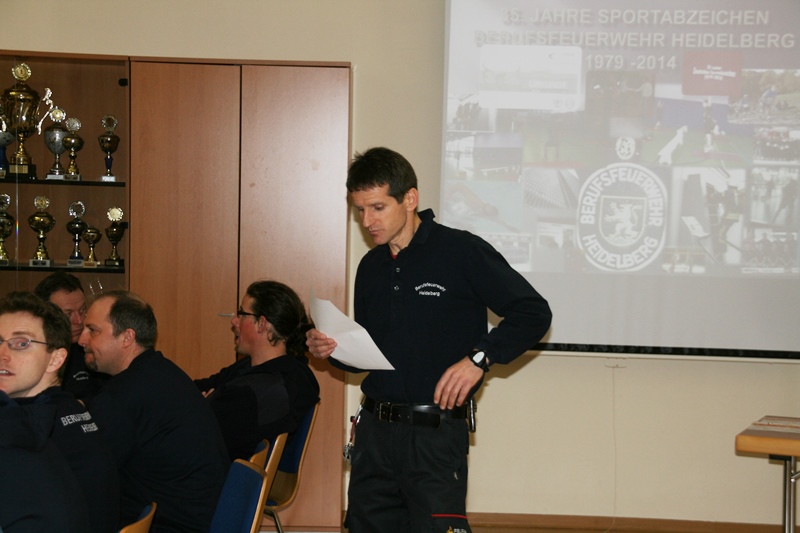 In diesem Jahr feiert die Berufsfeuerwehr Heidelberg ein besonderes Jubiläum: „35 Jahre Deutsches Sportabzeichen“. Aus diesem Anlass fand am 23. Februar 2015 im Feuerwehrgerätehaus Heidelberg-Kirchheim eine kleine Jubiläumsfeier mit Sportlerehrung statt.