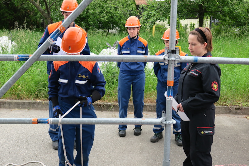Fachlicher ging es für die Jugendfeuerwehr bei der Jugendflamme der Stufen 1 und 2 zu. Gerätekunde, Stiche und Knoten oder auch das Kuppeln und Einbinden einer Saugleitung gehörten zu den Aufgaben, die an den verschiedenen Wertungsstationen absolviert werden mussten.