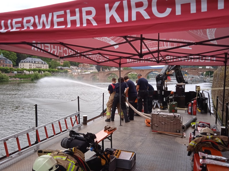 Um hier effektiv helfen zu können, kommt seit mehreren Veranstaltungen ein Behelfslöschboot zum Einsatz, welches gemeinsam mit dem Wasserstraßen- und Schifffahrsamt Neckar (WSA) und der Feuerwehr Heidelberg betrieben wird.
