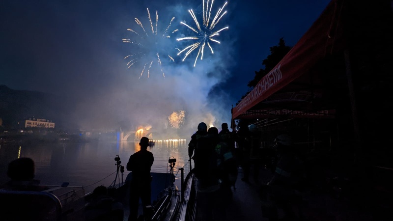 Das Feuerwerk ist nicht nur bei den vielen Zuschauern entlang des Neckars beliebt, auch liegen viele private Sportboote sowie Fahrgastschiffe vor der Alten Brücke im Wasser um den spektakulären Effekten des Feuerwerks folgen zu können.