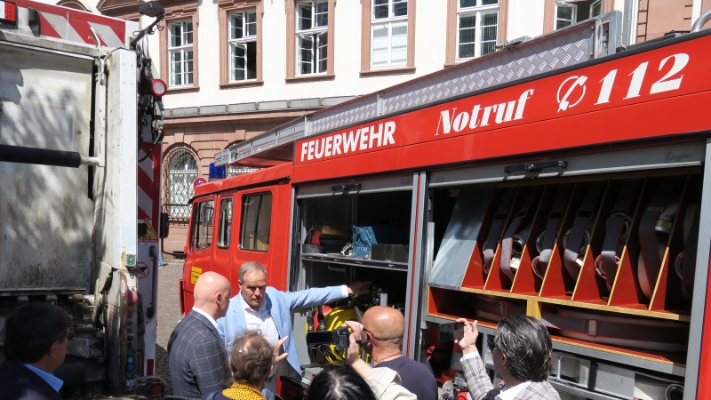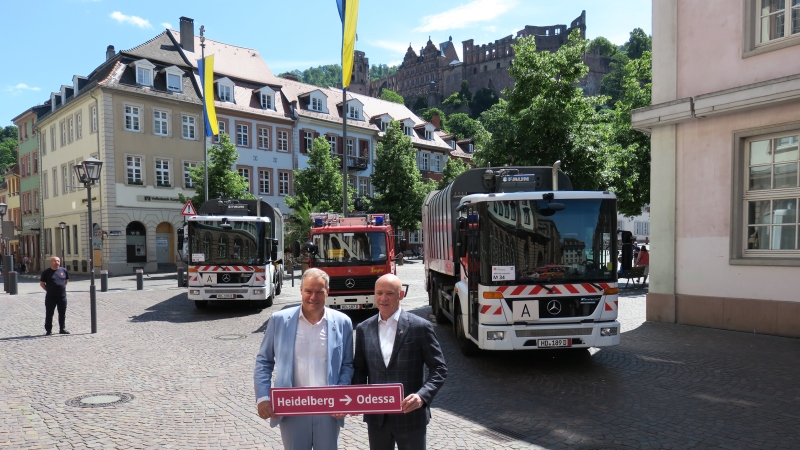 Im Zuge der neuen Städtepartnerschaft konnten die Gäste aus Odessa drei außer Dienst gestellte Fahrzeuge der Stadt Heidelberg in Empfang nehmen: zwei Müllfahrzeuge und ein Löschgruppenfahrzeug vom Typ LF 8/6.