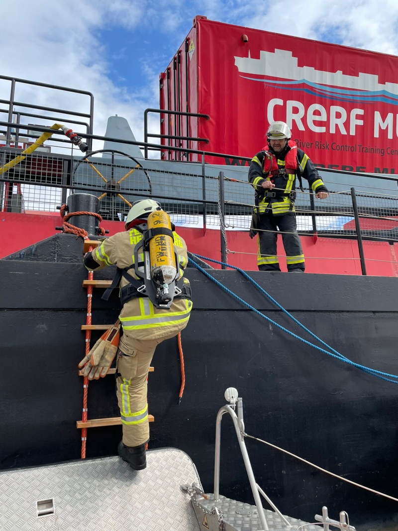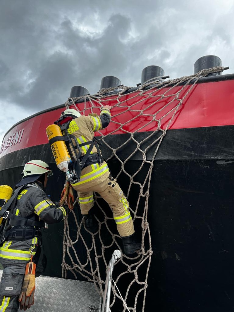 Einsatzrealistisches Training zu Hilfeleistungen und Brandbekämpfung auf Binnenschiffen