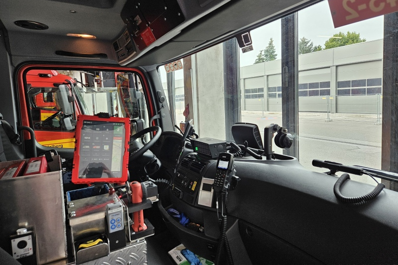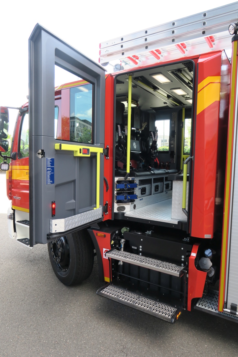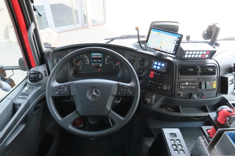 Bildergalerie HLF 10 2. Generation 2025 Aufbau Fa. Schlingmann Fahrgestell Mercedes Benz Atego 1530 F Pneumatischer Lichtmast mit LED Beleuchtung Heckansicht mit FPN 10-2000 Automatisch ausklappende Trittstufen ermöglichen den Zugang zum Mannschaftsraum Auf dem Dach werden eine Schieb- und eine Steckleiter mitgeführt Geräteräume G 1, 3 und 5 Geräteräume G2, 4 und 6 Hydraulische Rettungsgeräte Dank Akkutechnik sind die Rettungsgeräte schneller einsatzbereit Der Fahrzeugführer hat Zugriff auf Einsatztablet und Messgeräte Bick auf den Fahrerplatz