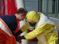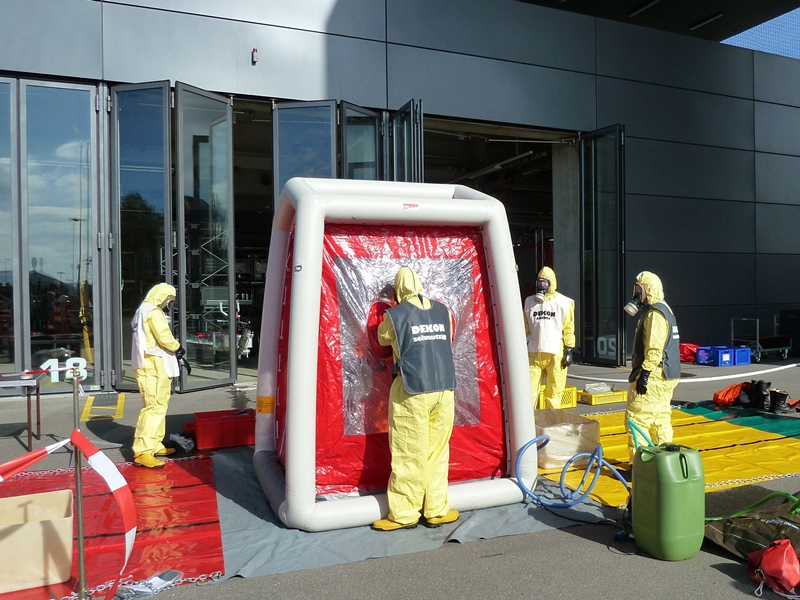Die Abläufe zur Durchführung einer ordnungsgemäßen Personendekontamination müssen regelmäßig geübt werden, damit im Einsatzfall keine Dekontaminationsverschleppung erfolgt.