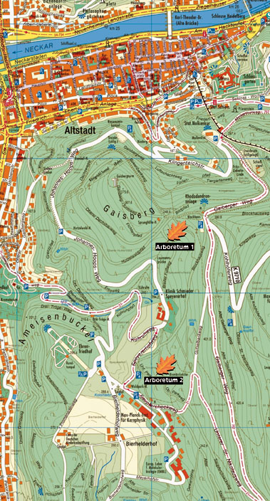 Map showing the arboretums (Source: Stadt Heidelberg)