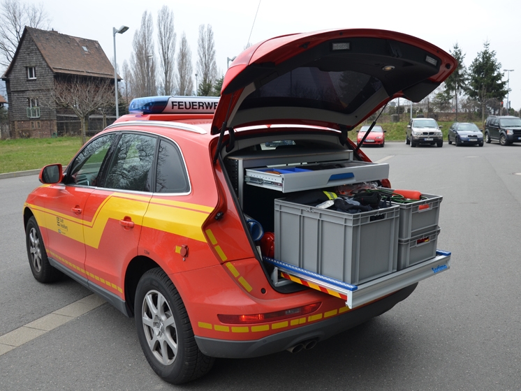Im Gegensatz zu den übrigen Kommandowagen verfügen die beiden Fahrzeuge über eine umfangreiche Beladung, die über eine Schienensystem leicht zu entnehmen ist. Hierzu gehören verschiedene Nachschlagewerke, Taschenlampe, Handfunkgeräte, Megaphone usw.