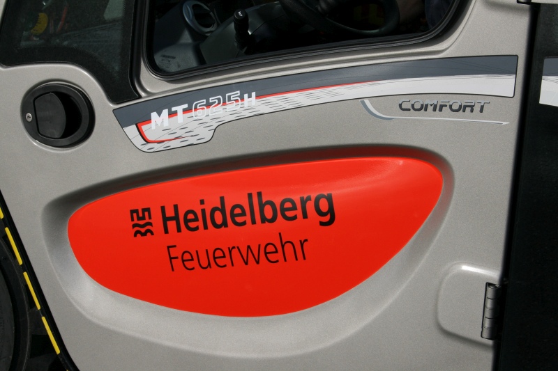 • Beklebung mit Slogan des Leitbildes und Feuerwehrsignet (Foto: Feuerwehr Heidelberg)