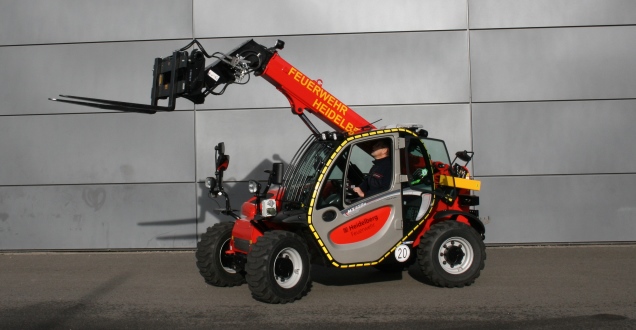 Der Teleskopstapler hat eine Arbeitshöhe von bis zu 6 Meter (Foto: Feuerwehr Heidelberg)