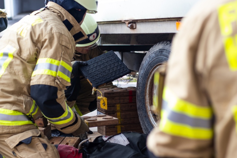 Technische Hilfe war ein Teil des Lehrgangs Auf dem ehemaligen Airfield wurde praktisch geübt In Übungen wurde das theoretische Wissen praktisch umgesetzt Der Gruppenführer gibt dem Trupp einen Einsatzauftrag Auch mit den neuen MLF wurde geübt