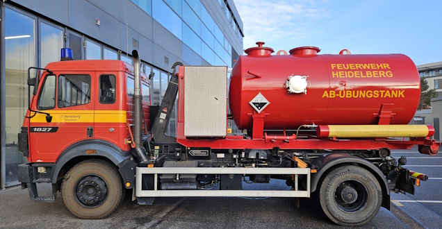 Um solche Lagen üben zu können, verfügt die Feuerwehr Heidelberg über den Abrollbehälter Übungstank