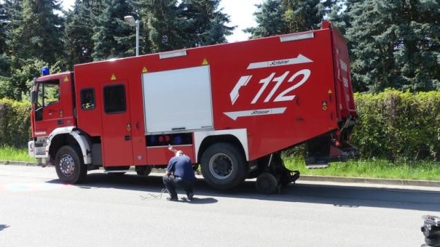 Hierzu verfügt dazu Fahrzeug über einen hydraulischen Schienensatz, mit dem es an einer geeigneten Eingleisstelle (z.B. Bahnübergang oder in Fahrbahn eingelassene Gleisanlagen) auf die Schienen eingegleist werden. Das Fahrzeug fährt dann die Einsatzstelle rückwärts an.