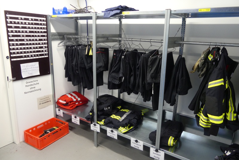 Während der Reinigung steht den Einsatzkräften Ersatzkleidung aus dem Kleiderlager zur Verfügung.