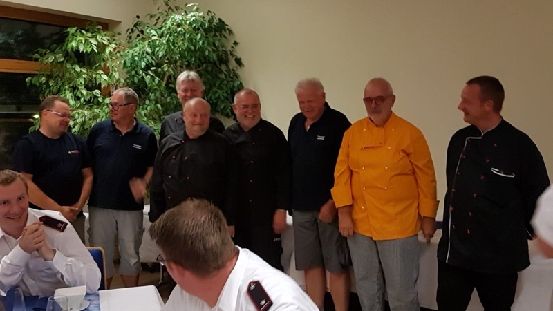 Den Abschluss des Lehrganges bildete ein Drei-Gänge-Menüs für 100 Personen, welches anlässlich der Verabschiedung des scheidenden Feuerwehrkommandanten Dr. Georg Belge im Feuerwehrhaus Kirchheim zubereitet und serviert wurde.