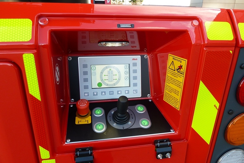 Die im Jahr 2021 beschaffte Drehleiter verfügt über eine absenkbare Leiterspitze, welche das Anleitern an zum Beispiel Dachgauben, aber auch das Anfahren schwer zugänglicher Stellen in vielen Fällen erleichtert beziehungsweise erst ermöglicht.