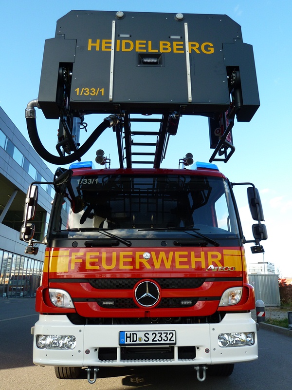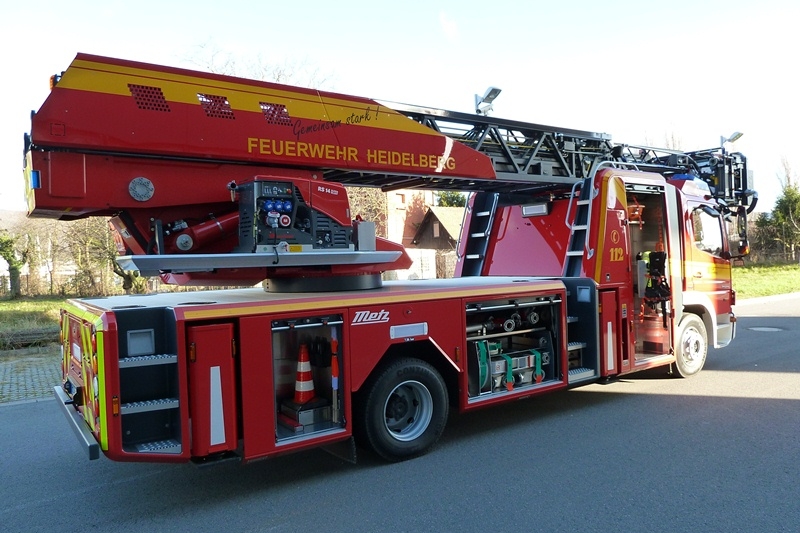 Die von der Firma Metz gebaute Drehleiter der Baureihe L32A XS verfügt über einen absenkbaren 4,6m langen Korbarm. Dieses System kommt in Heidelberg erstmals zum Einsatz und eröffnet der Feuerwehr Heidelberg nicht nur die Möglichkeit auch bauwerksseitige, schwierige Objekte anfahren zu können. Vielmehr erleichtert die Möglichkeit den Korbarm abzusenken den Einsatzkräften einen leichteren Zugang in Fenster, Dachgauben usw. Auch für zu rettende Personen wird der Zugang in den Rettungskorb erleichtert und kann sicherer erfolgen als bisher. Auch die Zuladung des Rettungskorbes hat sich von bisher 270 kg auf maximal 450 kg erhöht. Damit können erstmals bis zu 4 Personen im Rettungskorb befördert werden.