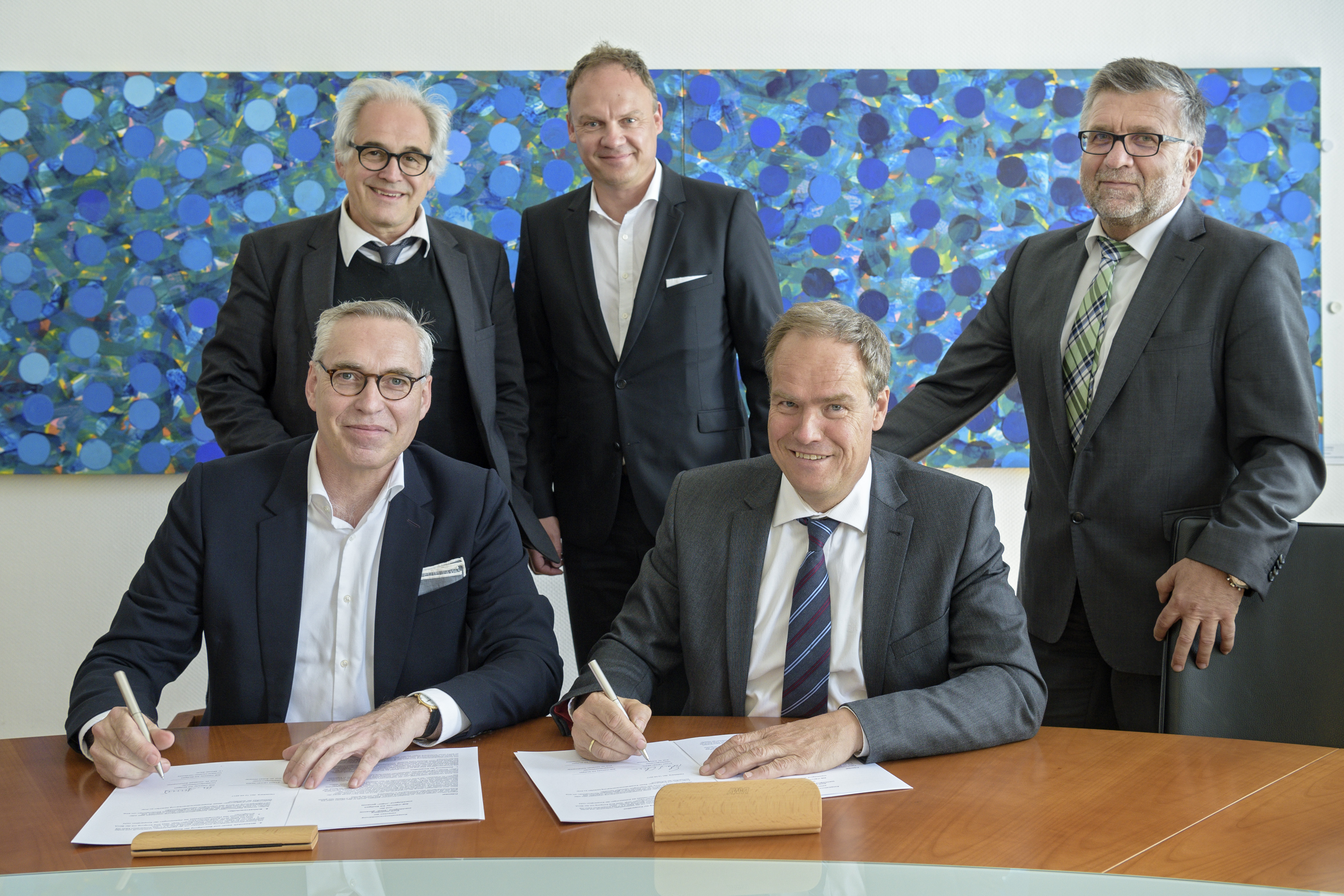 Stellten die Pläne für die Schaffung von Mietwohnungen in Patrick-Henry-Village vor: (v.l.) IBA-Geschäftsführer Professor Michael Braum, Baubürgermeister Jürgen Odszuck, BImA-Vorstandsmitglied Paul Johannes Fietz, Oberbürgermeister Prof. Dr. Eckart Würzner und Konversionsbürgermeister Hans-Jürgen Heiß. (Foto Dittmer)