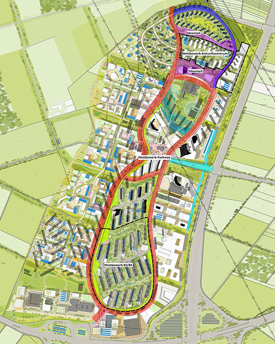 Ein wesentliches städtebauliches Element im neuen Stadtteil wird der „Parkway“: eine geschwungene, ringförmige Straße zwischen der künftigen „grünen Mitte“ und den äußeren Quartieren. Wie der „Parkway“ genau gestaltet wird, soll nun im Rahmen eines Planungswettbewerbes geklärt werden. Der Gemeinderat hat in seiner Sitzung am 9. Dezember 2021 einer entsprechenden Auslobung zugestimmt. Ziel ist es, die Preisgerichtssitzung im zweiten Quartal 2022 durchzuführen.