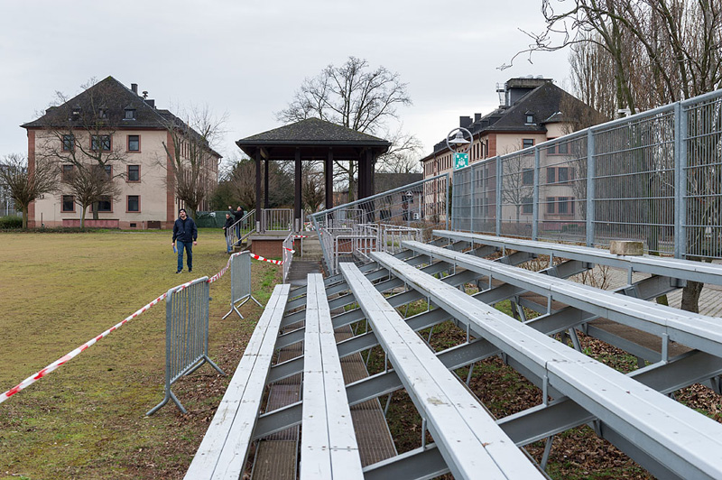 Vom Eingang Rheinstraße ging es durch den beeindruckend großzügigen parkartigen Garten der Generalsvilla und vorbei an der Kommandantur zum Paradeplatz. Auch wenn man ihn von Plänen und Luftbildern schon kennt, seine ungeheure Dimension erschließt sich erst, wenn man ihn selbst einmal durchquert oder umrundet hat.